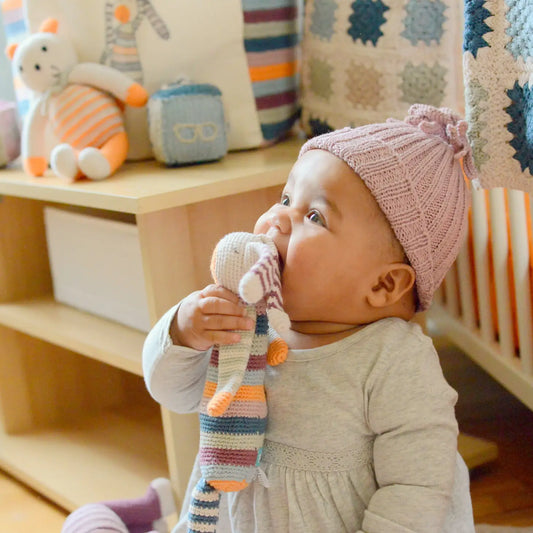 Baby-Decke gestrickt Streifen pastell Sommer