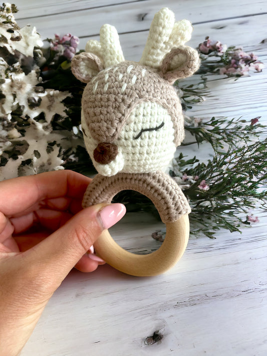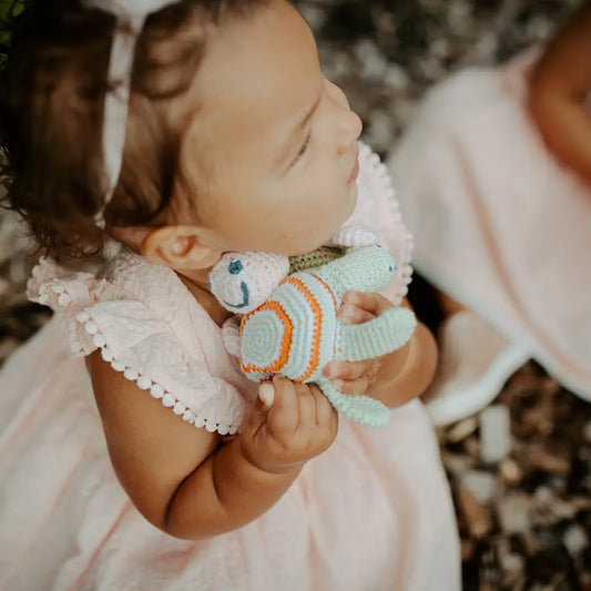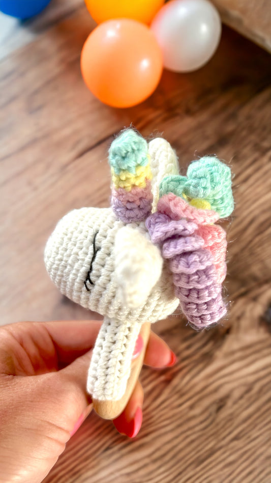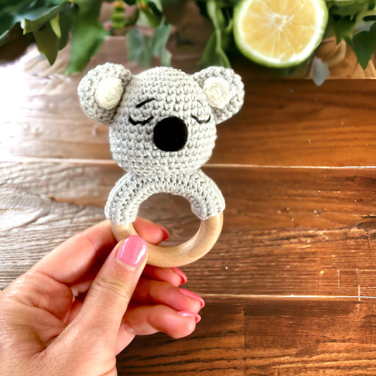 • Zuckersüsse, von Hand gehäkelte Rasseln, die teilweise einen stabilen Holzring besitzen, und perfekt als natürliche Zahnungshilfe dienen können. Das Holz ist robust und hat eine angenehme, weiche Oberfläche, die das Zahnfleisch schont.