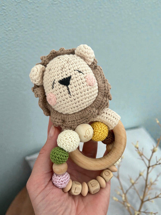 Gehäkelte Löwenrassel personalisiert
