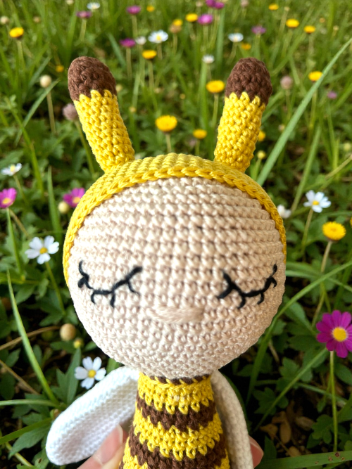 Handgehäkelte Baby-Rassel Biene Kuscheltier