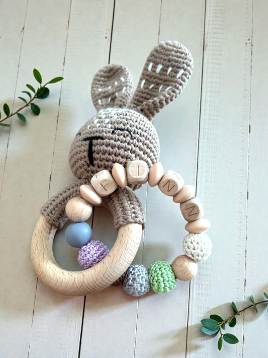 Handgehäkelte Baby-Rassel Biene Kuscheltier