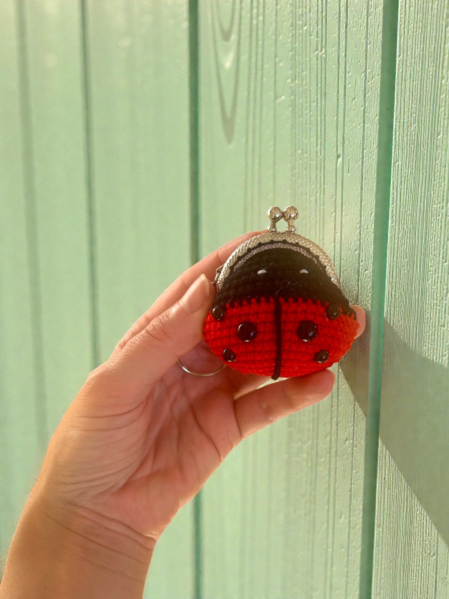 Mini-Gelbörse Portemonnaie handgehäkelt Marienkäfer