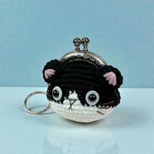 Mini-Gelbörse Portemonnaie handgehäkelt Katze